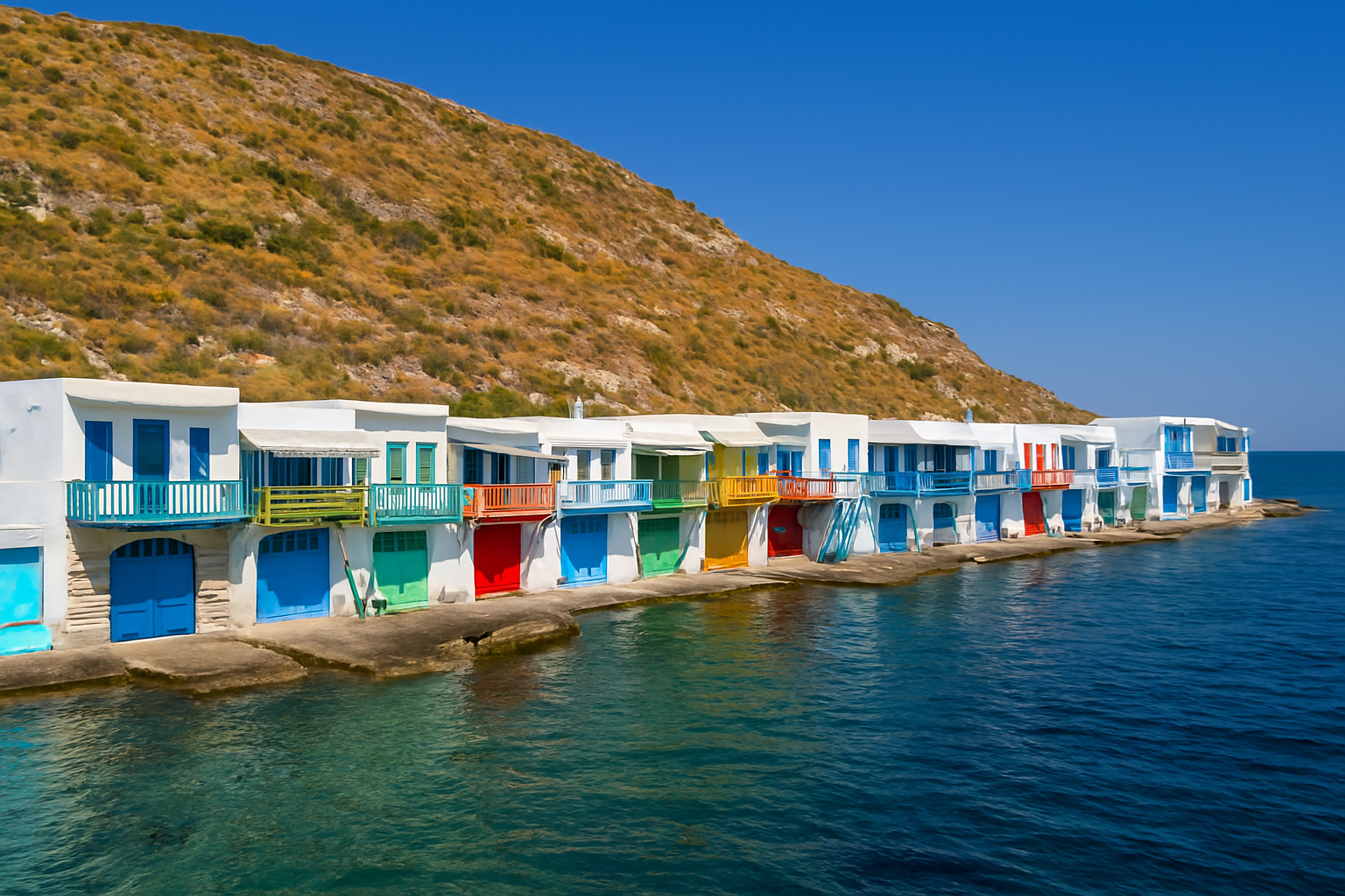 Milos is an island of raw beauty and quiet eleganceβwhere volcanic cliffs meet crystal-clear waters, and charming villages overlook golden sunsets. From the white, sculpted rocks of Sarakiniko to the sea caves of Kleftiko, and from the colorful fisherman homes in Klima to the hilltop views of Plaka, the island invites you to explore at your own pace.